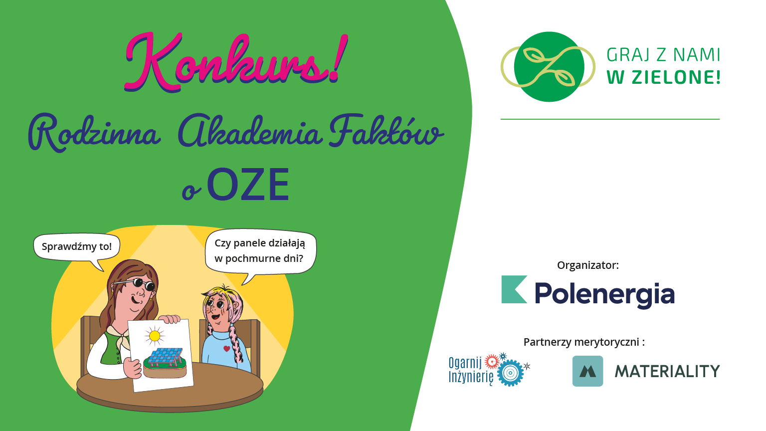 Grupa Polenergia realizuje projekt Graj z nami w zielone!® we współpracy z licznymi placówkami edukacyjnymi mieszczącymi się wszędzie tam, gdzie obecne są projekty Polenergii w budowie i operacji. Zaproszone szkoły podstawowe i przedszkola realizują ekolekcje, które dotyczą zagadnień związanych z segregacją odpadów oraz obiegiem zamkniętym, gospodarką wodną a także odnawialnymi źródłami energii.